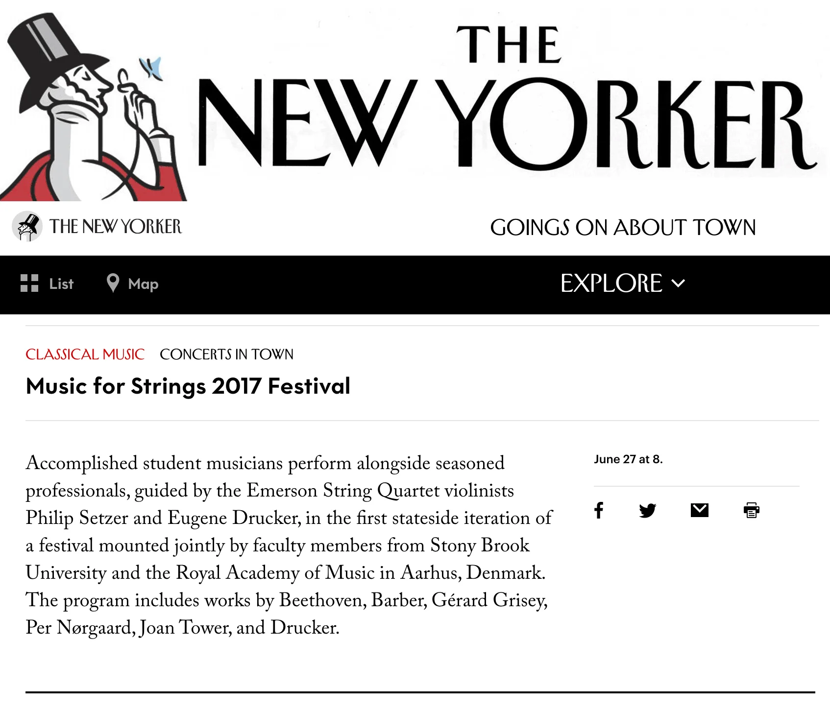 The New Yorker Magazine features New Music for Strings Carnegie Hall concert on June 27, 2017.